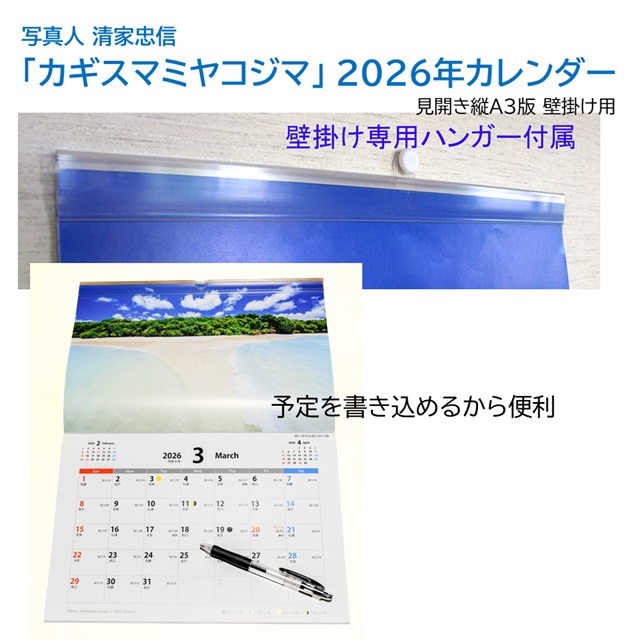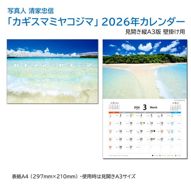「カギスマミヤコジマ」 2026年カレンダー (A3壁掛け)年中宮古島を感じたい方へ 写真人・清家忠信